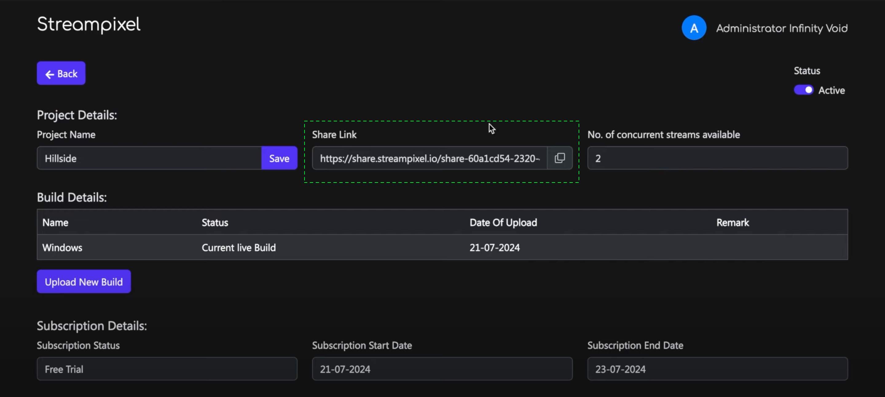 Once your project is approved by our internal team, a share link will appear on your project details page, as shown in the image below. You can share this link with others, and users will be able to view your project. There is only one link, which you can distribute to others.